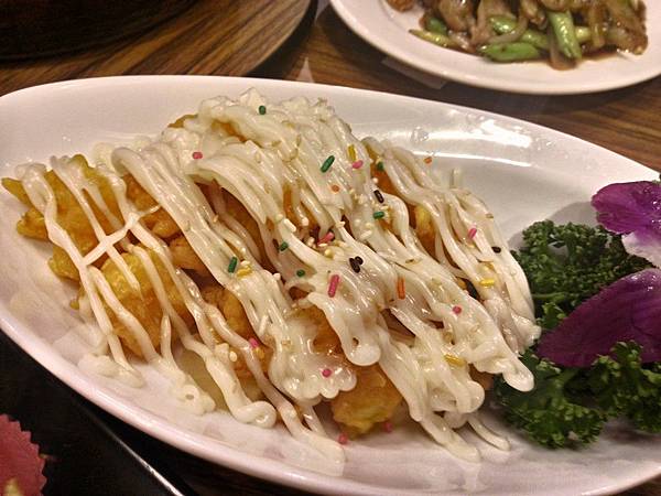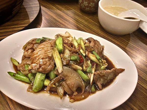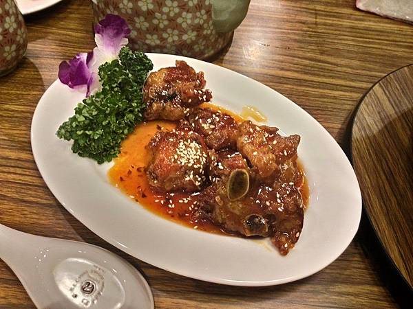 這道是先滷後炸過排骨,在淋上鹹甜鹹甜的醬汁,有點肥也不太膩